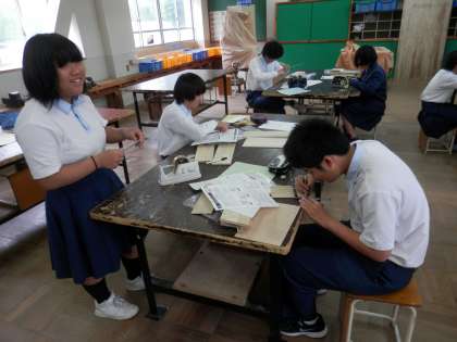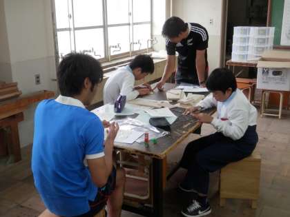 木材加工です。まだ、作業の初期段階ですが、熱心にやっていました。