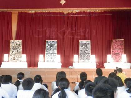 3年生は、これまで「ちぎり絵」「点描画」に取り組んできて、今回は「切り絵」です。見事な作品ができました。