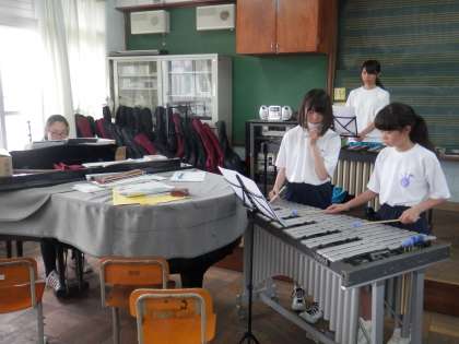 ブラスバンド部は、今日もしっかり練習をしています。