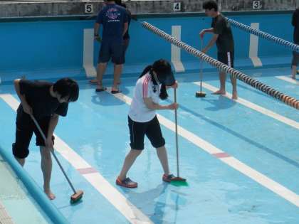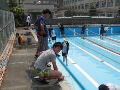 生徒諸君、次に学校へ来るときにはプールがきれいになって、水が張られていると思います。楽しみにしてください。