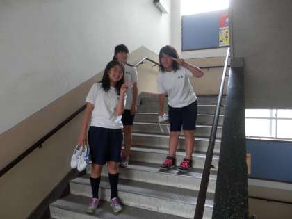 2組の音楽の時間と3時間目の体育に向かう女子の姿です。