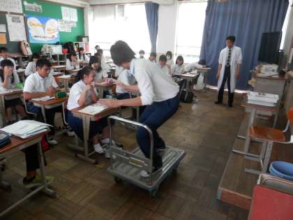 実は、この直前に私もこの実験をさせられました。生徒の前でこけるのは恥ずかしいしので、ちょっぴり緊張しました。