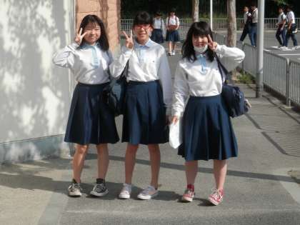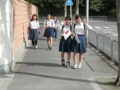 そんな日でも、向島中学校の生徒たちは元気に登校してきます。