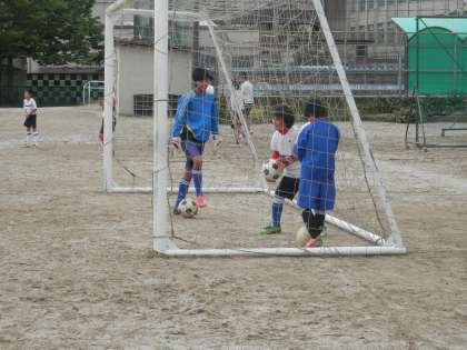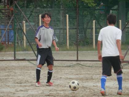 午後のグランドでは、サッカー部が元気な声をあげて活動しています。