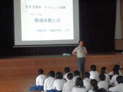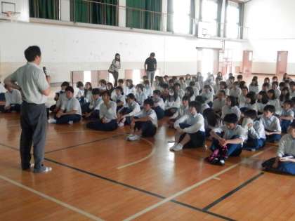 6時間目、2年は「チャレンジ体験学習」に向けて学年集会をしました。