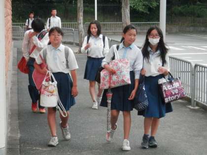 そのような中、向島中学校の生徒は元気に登校してきます。