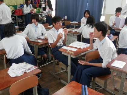 英語の時間では、今日ペアで会話のテストがあるようです。
