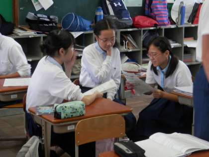 英語の時間はいつも活気があります。