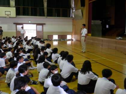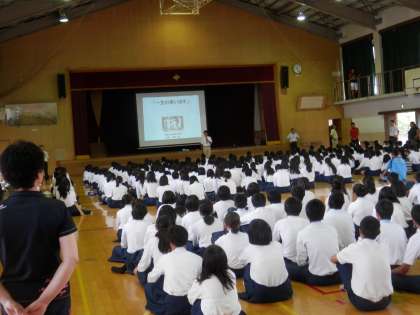 急きょ集まったにもかかわらず、全校生徒は集中して話を聴くことができました。