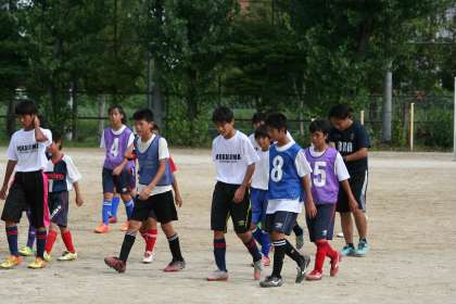グランドの気温は相当上昇していると思われます。流石に、水分補給に気を遣いながらの練習です。