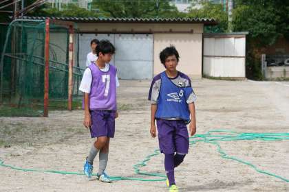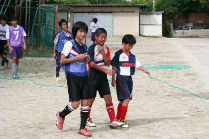 休憩時間にもボールをける子もいれば、ゆっくり体を休める子もいます。