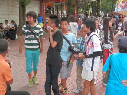 部活動を終えた生徒らが私服に着替え、女子は少々おめかししてやってきます。