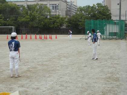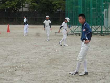 野球部は、学校で練習してから合併チームとの合同練習へと向かいます。