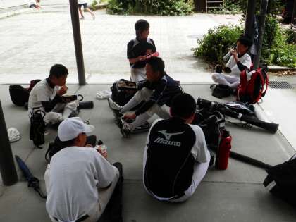野球部は昼食を済ませてから小栗栖中学校へ行きます。