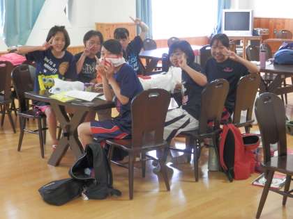 女子バスケットボール部は、体育館が空くまでの間、学習タイムです。