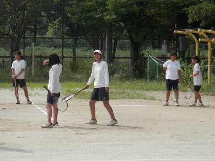 女子テニス部はやる気になっていて、グランドが空いていれば練習をするようになりました。昨日も今日も1日練習です。