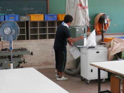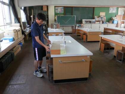 今日は、部活動も休止して「備品整理の日」としています。日ごろは忙しくてなかなか備品の整理ができません。そこで、夏休みの1日をこのように活用しています。