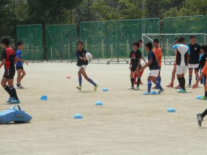 明日、高校生との合同練習があるということで、ラグビー部は練習を開始しました。