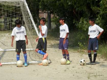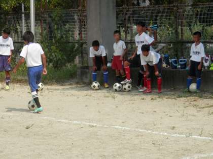 サッカー部は、今日は坂先生が指導に当たっています。とても基本的なことを練習していました。