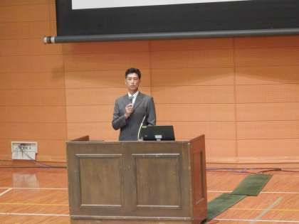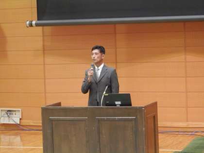 会長を務めます「中学校人権教育研究集会」で、開会のあいさつをする様子です。