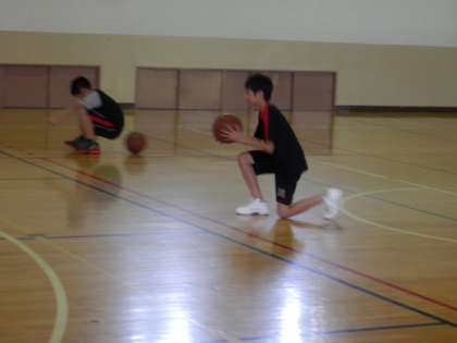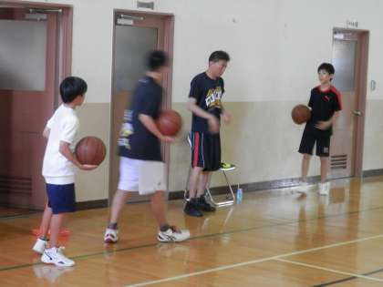 体育館では、男子バスケット部が活動しています。