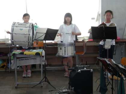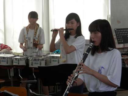 この後は、楽器を片付けて中庭でマーチングの動きの練習です。