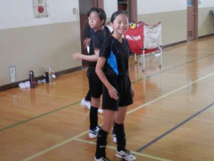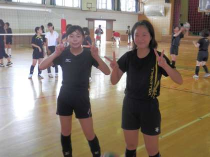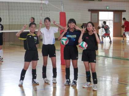 体育館ではバレー部が東中を招いて合同練習です。
