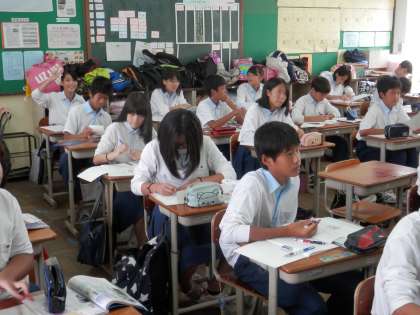 国語の時間です。小テストの解答なんかをした直後だと思います。
