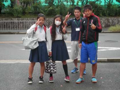 空はどんよりしていますが、生徒は元気に登校してきます。
