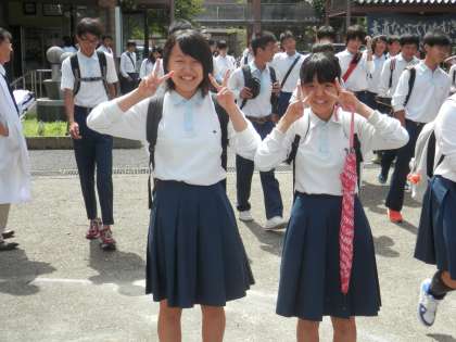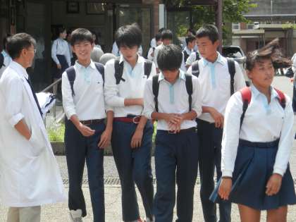 校門に立っていると、一斉に生徒が出てきました。