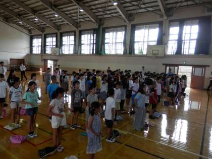 まずは、体育館で集合です。