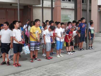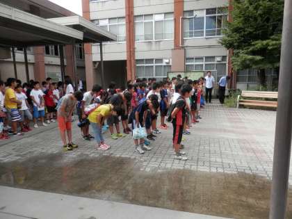 中学校の先生に対して、学校ごとに大きな声で挨拶をして帰っていきました。