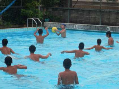 まずは、雨中のプール授業です。