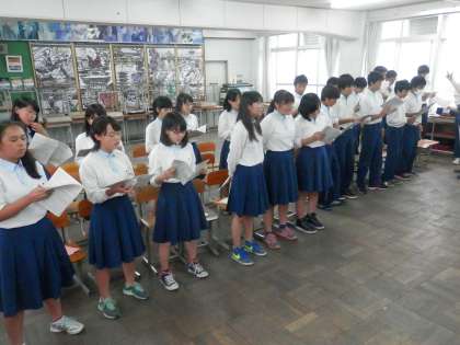 6時間の授業終了後に、どのクラスでも合唱を練習します。全体的には、まだそれほど熱は入っていないようですが、それでも3年生には気合を感じます。