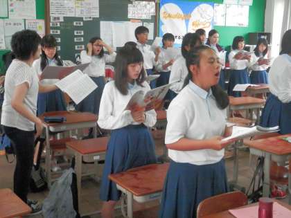 「聞きあう会」とは、例えば、1−1が3−1に一緒に合唱練習をしてもらうのです。お互いに披露し、感想を述べあいます。また、上級生は下級生に指導もします。