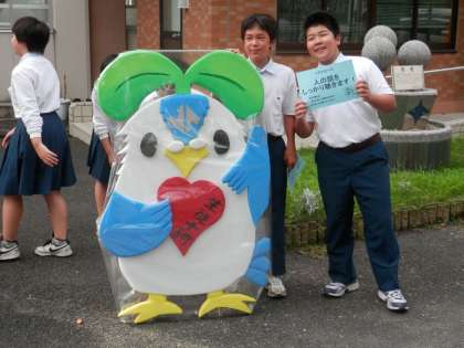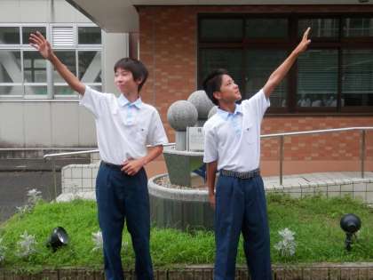朝から、生徒会本部役員と各学級の代表委員の人たちが校門に出てきてくれています。