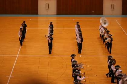 本校の部員がさっそうと登場します。人数的な不利さもなんのその。元気いっぱいの演奏です。