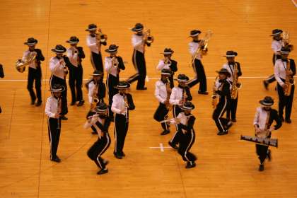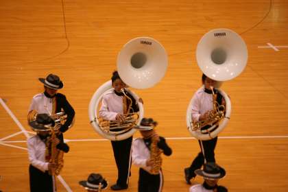向島中の出番のときに、「この学校のときだけすみません!」そう言って前の方へ入れてもらいました。