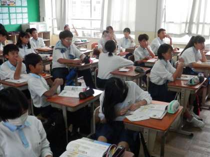 家庭科では、もうすぐ先に予定されている「和装体験実習」について説明されていました。みんながゆかた姿に変身します。楽しみですね。