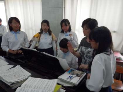 音楽室には、早めにやってきては、ピアノの周りに集まって合唱の練習をする人たちがいます。