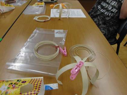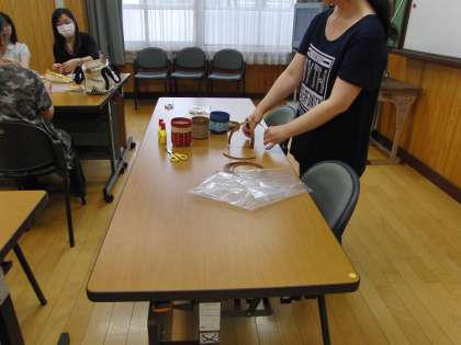 本日、本校の会議室にて、PTA文化教室「クラフトバンドで作る籠編み」