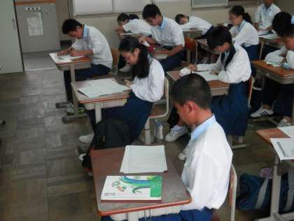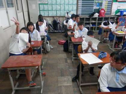 その後、英語、国語、理科の時間と観て回りましたが、どの時間も先週末に行われた総括考査のテストの返却を行っていました。。
