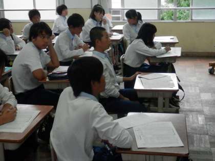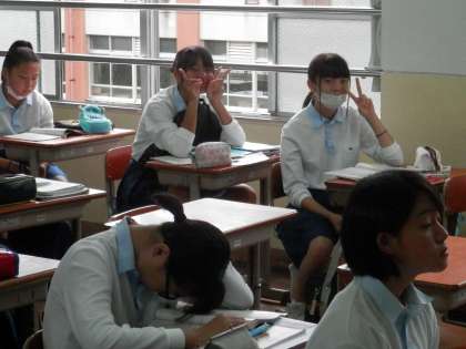 英語の時間ですが、今日は平井先生が一人で授業を行っています。