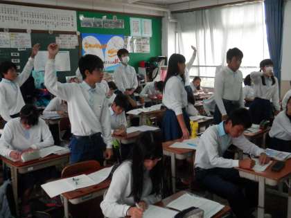 実は、5時間目の1組の英語の時間を京都市内の別の中学校の英語の先生が観にこられていました。