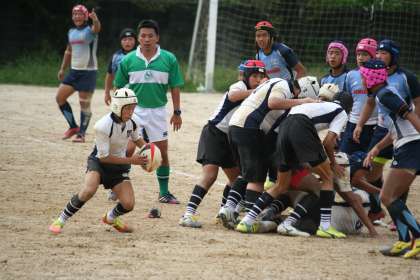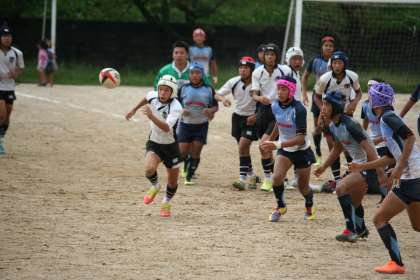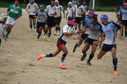 スクラムハーフとスタンドオフの早い攻撃が上手く流れを作ります。