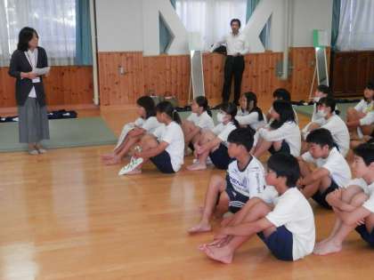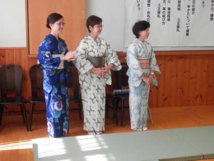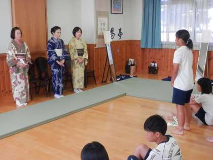 今日の2・3時間目、2年の2・3組で「和装指導教室」が行われ、外部から先生をお迎えして浴衣の着付け教室を行いました。