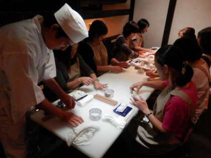 11時から、伏見区の親まなび委員会が東山区の「甘春堂」さんで「和菓子作り体験」を行いました。