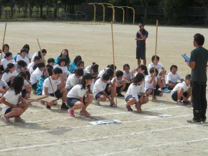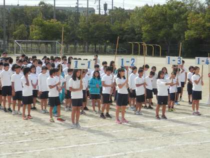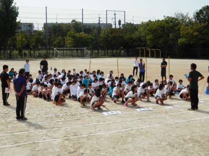 暑いグランドでは、体育大会に向けての学年練習が行われています。