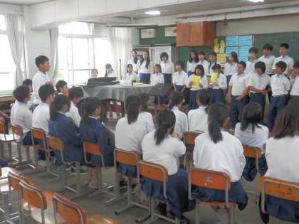1年生の合唱を聞いて、3年生がアドバイスをします。