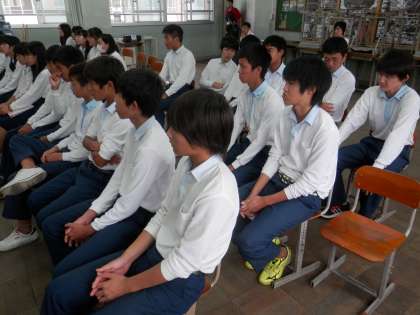 1−3の演奏の様子と、それを聞く3−3の生徒の様子です。